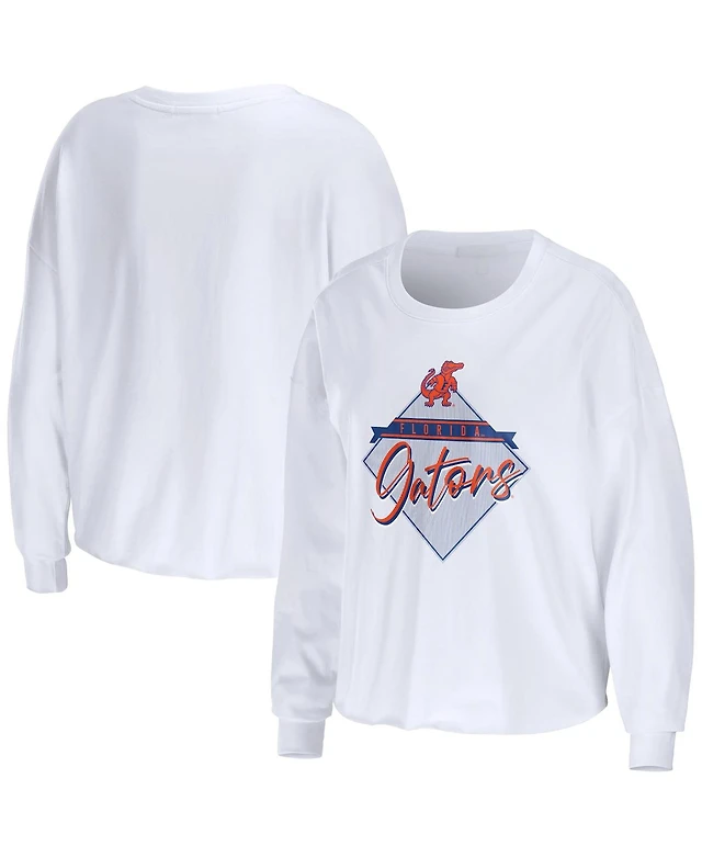 Women's Wear by Erin Andrews White Texas Longhorns Diamond Long Sleeve Cropped T-shirt