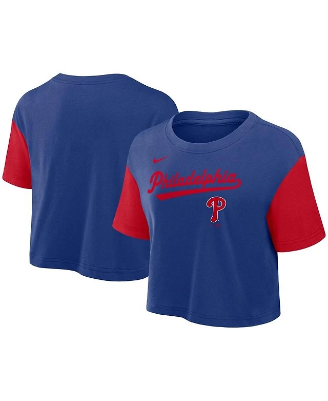 Nike Women's Royal/Red Philadelphia Phillies Script Cropped Performance T-Shirt