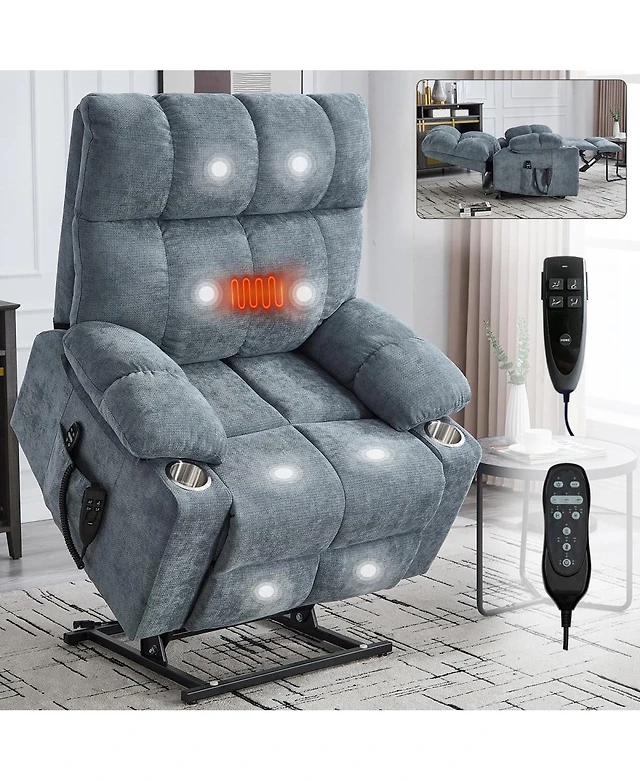 Streamdale Furniture Dual Motor Power Lift Recliner with Heat & Massage, 350 Lbs, Brown