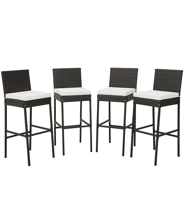 Set of 2 Patio Barstools – Wicker Outdoor Chairs with Cushions & Armrests