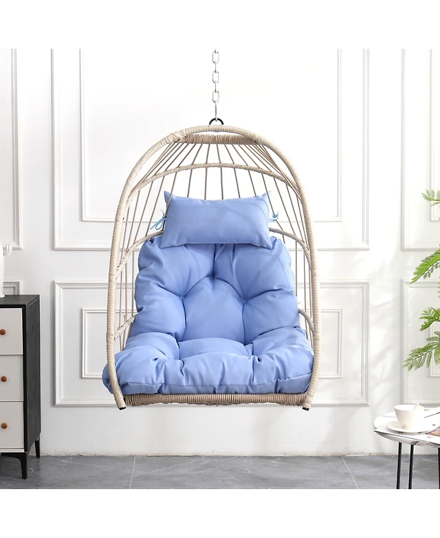 Gymax Hanging Hammock Chair Egg Swing Chair w/ Blue Cushion Pillow Stand