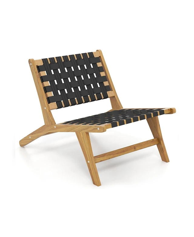 Gouun Indoor Patio Teak Wooden Chair with Woven Webbing Seat and Backrest
