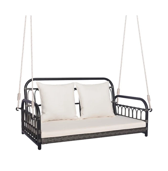 Hand-Woven Rope Hanging Chair with Thick Cushion and Folding Metal Frame