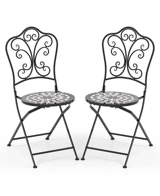 Set of 2 Mosaic Chairs for Patio with Decorative Backrest Heavy-Duty Frame