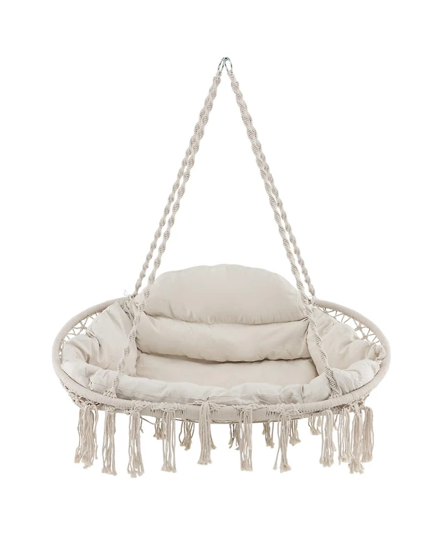 Gouun Hand-Woven Rope Hanging Chair with Thick Cushion and Folding Metal Frame
