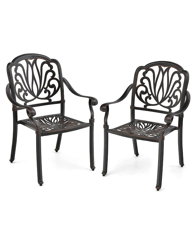 Gymax 2 Pieces Cast Aluminum Chairs Set of 2 Stackable Patio Dining Chairs w/ Armrests