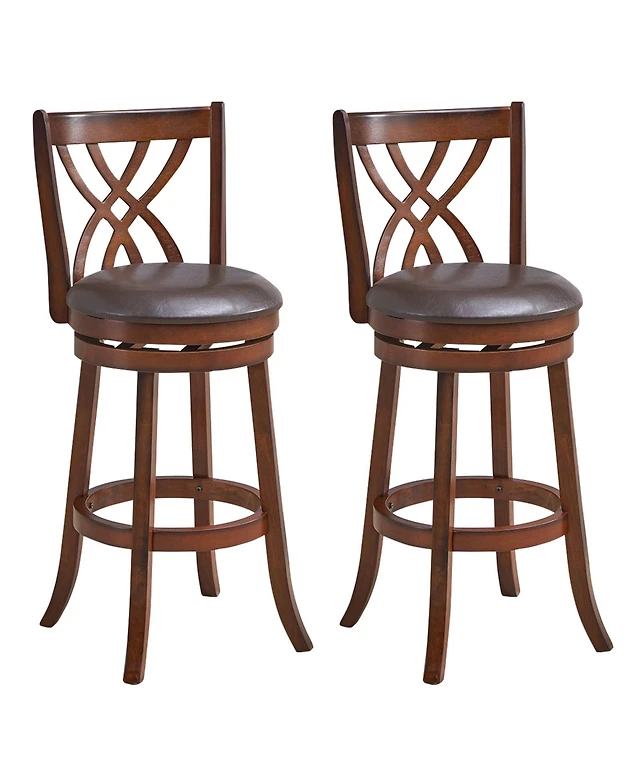 Set of 2 Patio Bar Chairs with Detachable Cushion and Footrest