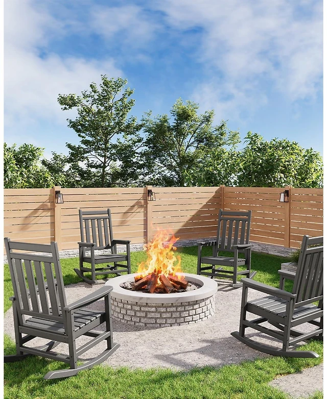 Gouun 3 Piece Patio Rocking Set Wicker Rocking Chairs with 2-Tier Table