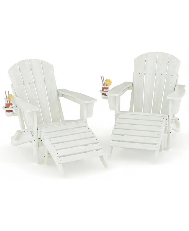 gaomon Folding Adirondack Chair Set of 2, Hdpe Outdoor Patio Chair with Cup Holder, All Weather Resistent Wooden Textured for patios, Decks