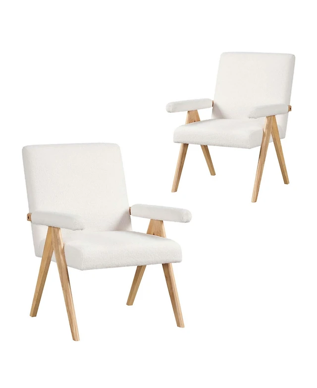 Streamdale Furniture Polyester Beige Fabric Dining Chair with wooden frame (Set of 2)-Natural