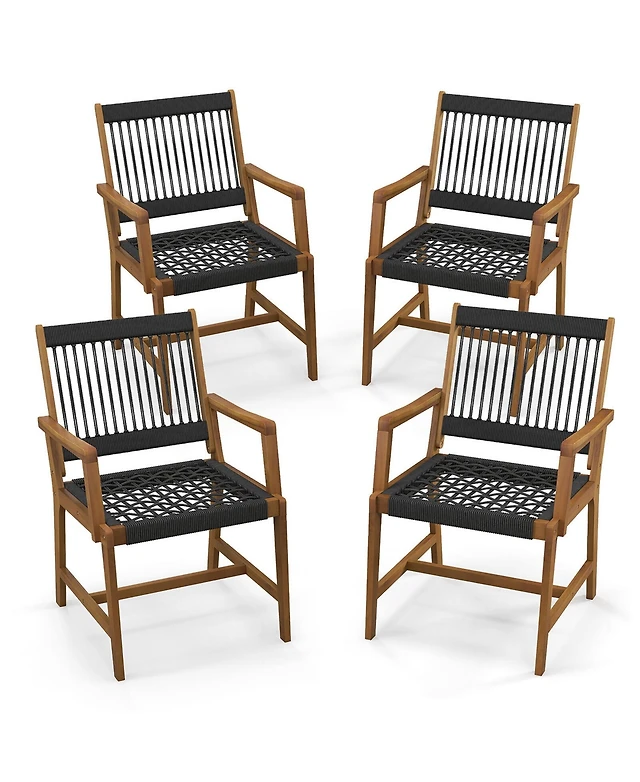 Gymax Teak Wood Patio Dining Chair Outdoor Armchair w/ Slatted Seat & Solid Legs