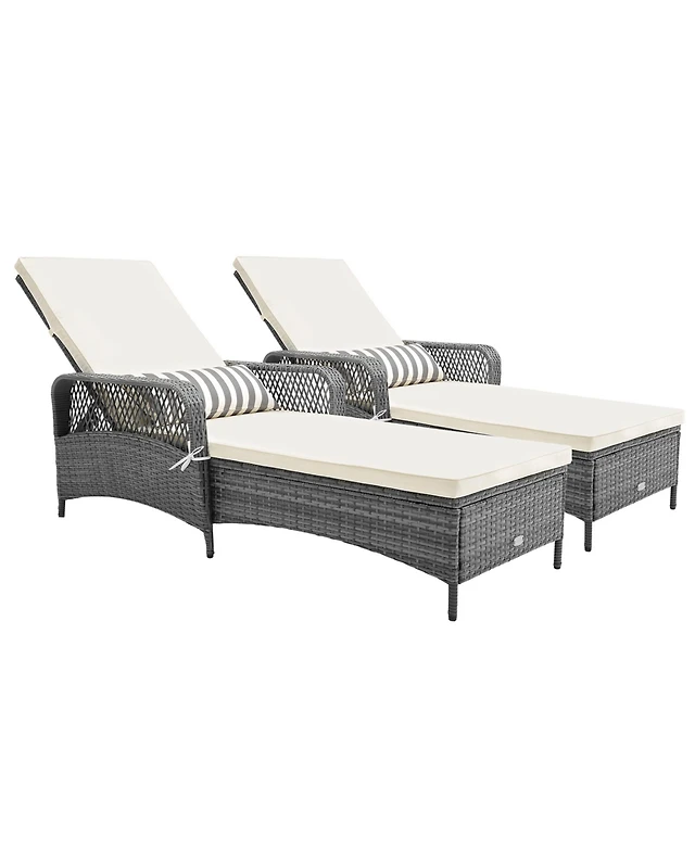 Gymax Set Of 2 Outdoor Chaise Lounge Chair w/ Adjustable Backrest Cushion & Storage