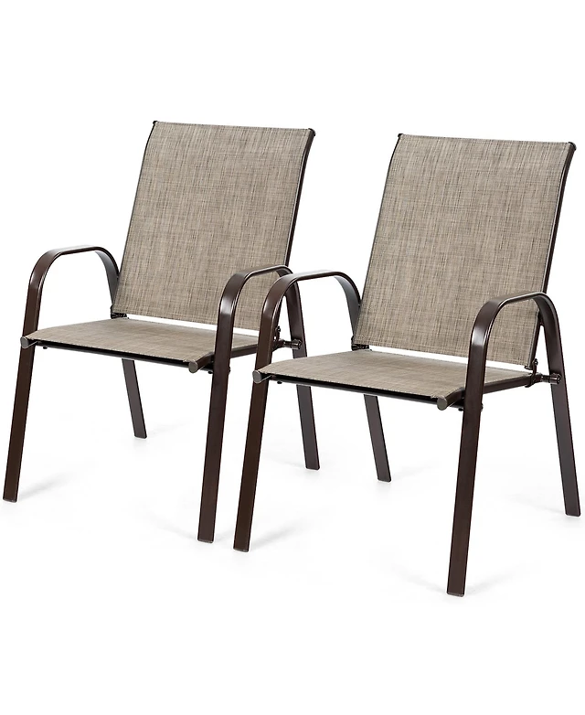 Gymax 4PCS Patio Stacking Dining Chairs w/ Curved Armrests & Breathable Seat Fabric Brown