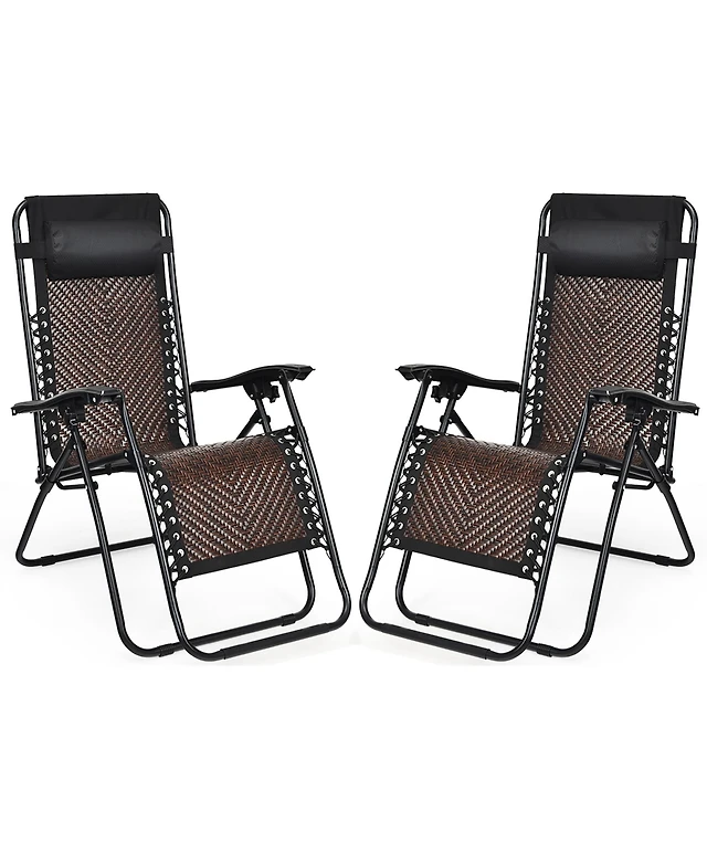 2 Pcs Patio Lounge Chair Chaise Recliner Back Adjustable Garden