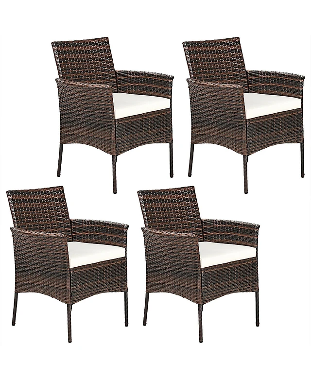 Set of 2 Patio Rattan Arm Dining Chair Cushioned Sofa Furniture