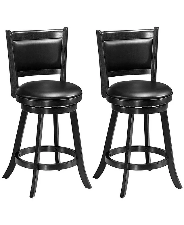 Costway Set of 2 Bar Stools Counter Height Chairs w/ Pu Leather Seat