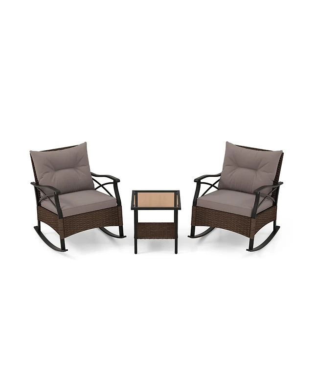 3 Piece Patio Rocking Set with Smooth Motion Outdoor Rocker Chair Bistro