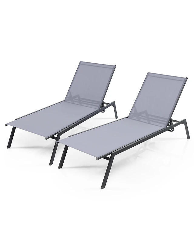 Gouun 2 Piece Patio Folding Chaise Lounge Chairs Recliner with 6-Level Backrest
