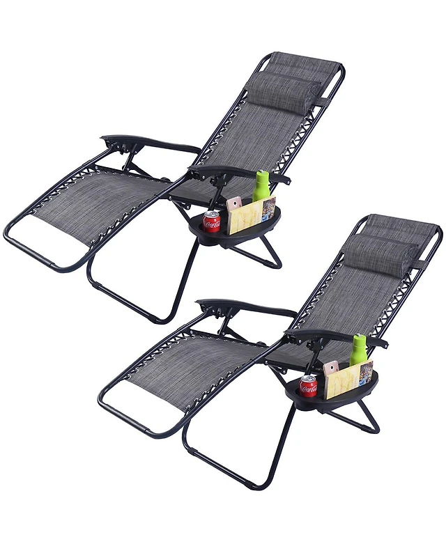 Adjustable Patio Recliner Chair Metal Outdoor Lounge with Flip Table Push Back, Angle, 6.8'' Removable Cushions, Beige