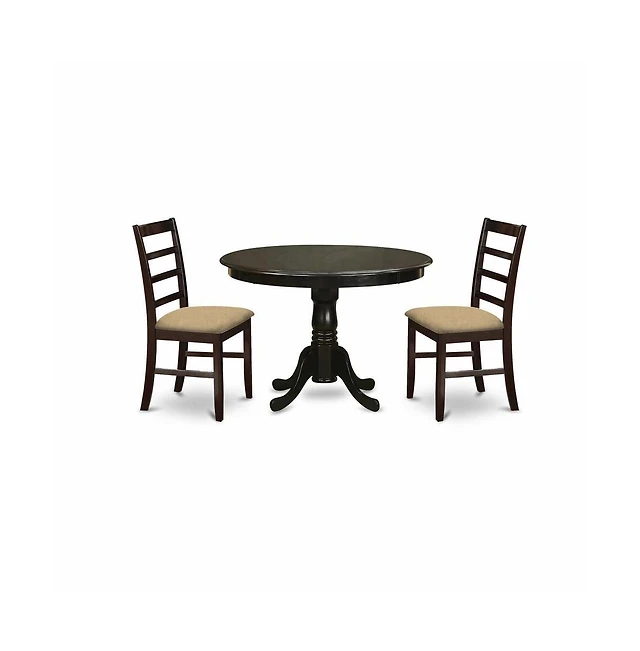 East West Furniture 3 Piece Dinette Sets Contains 1 Drop Leaves Wooden Table and 2 Dark Shitake Linen Fabric Parsons Chair High Back with Nail Heads