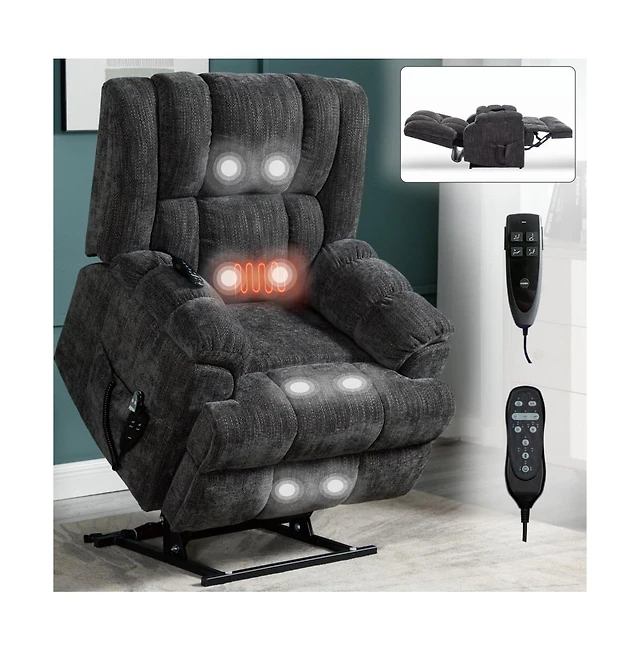 Up to 350 Lbs Power Lift Recliner Chair Heavy Duty Motion Mechanism with 8-Point Vibration Massage and Lumbar Heating, Usb and Type-c Ports