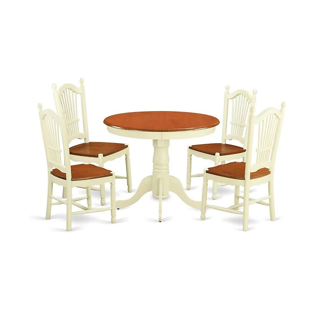 East West Furniture dining room table set of two wonderful dining chairs using Linen Fabric Doeskin color and a fantastic two 9"" drop leaf