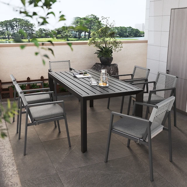 East West Furniture 7-Piece Beautiful Dining Room Set a Superb Cement Color Kitchen Rectangular Table Top and 6 Gorgeous Linen Fabric Parson Chairs wi