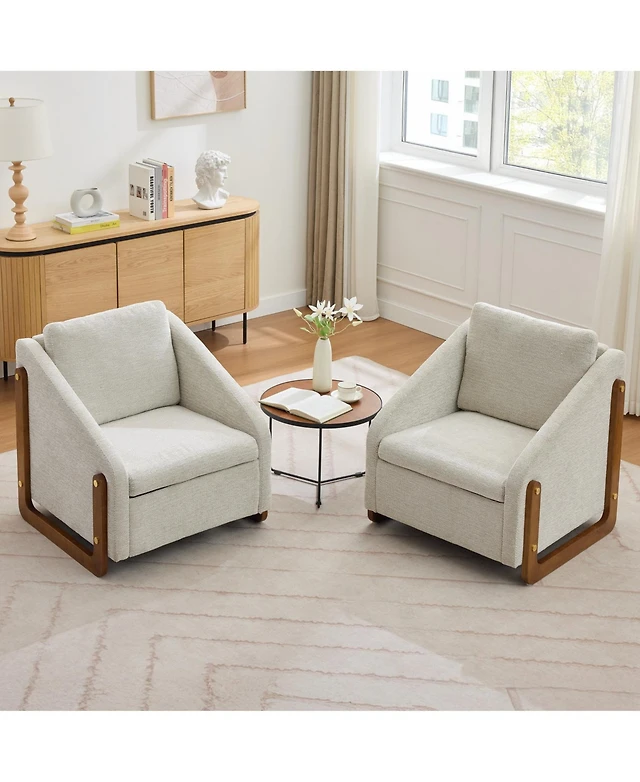 Gouun Solid Rubber Wood Fabric Accent Armchair