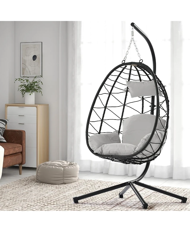 Outdoor Rocking Chair Oversized Patio Pe Wicker Egg Chair with Cushion