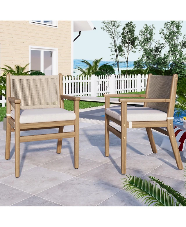 Streamdale Acacia Wood Armchairs with Rope Back and Cushions, Set of 2