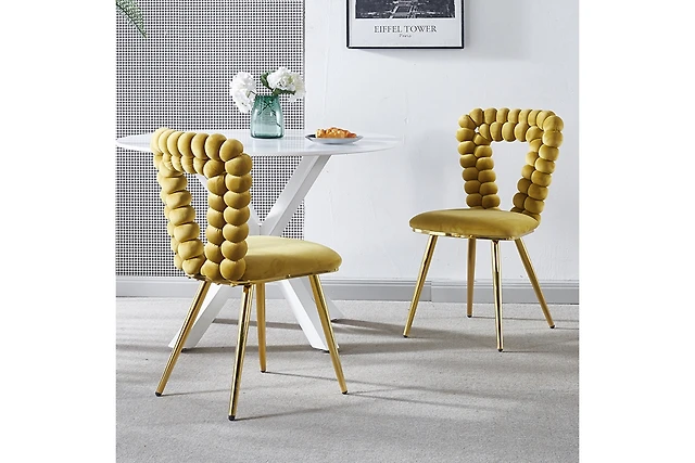 Set of 2 Tufted Dining Chair Parsons Upholstered Fabric Chair with Wooden Legs