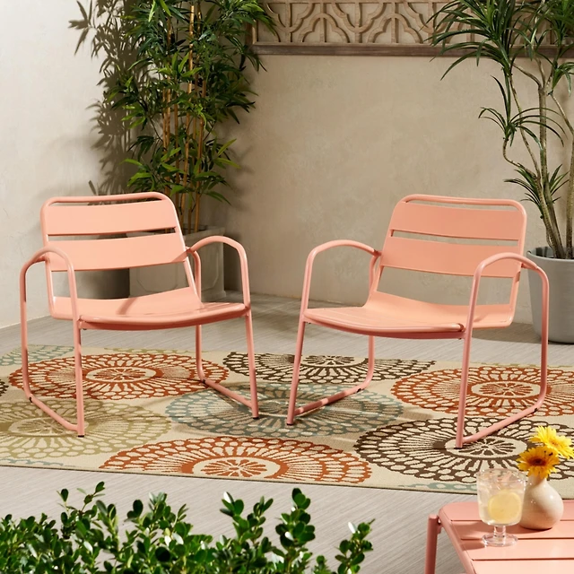 Skonyon 2 Pieces Sling Accent Chair Leisure Chair with Weatherproof Seat Fabric Indoor Outdoor-Navy