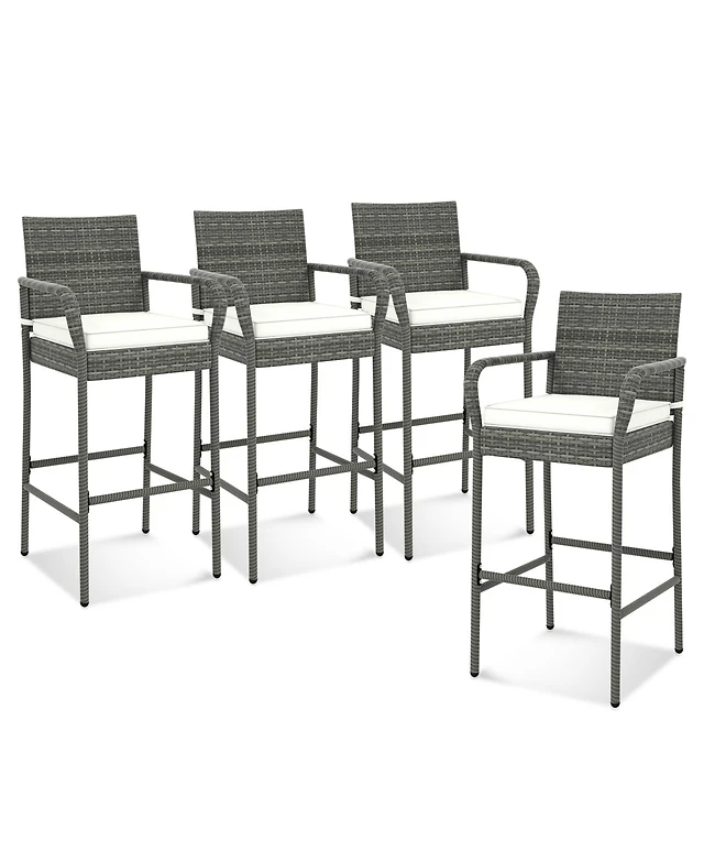 Gymax Wicker Bar Stools Set of 4 Patio Chairs w/ Solid Wood Frame & Ergonomic Footrest