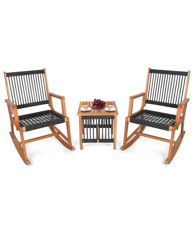 3 Pieces Acacia Wood Patio Furniture Set with Armchairs Coffee Table