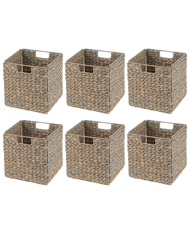 mDesign Seagrass Woven Cube Bin Basket Organizer, Handles, Pack