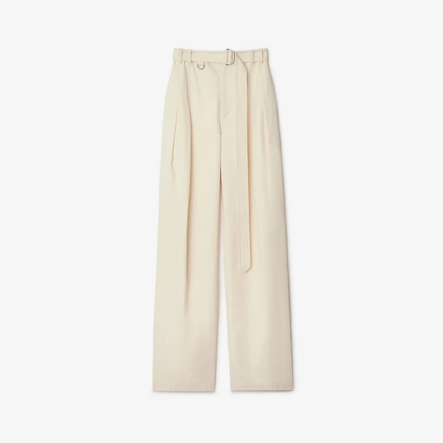Gabardine Belted Trousers in Lunar - Women, Cotton | Burberry® Official