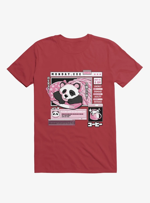 Monday Exe Sleeping Panda Red T-Shirt