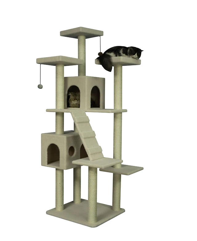 Armarkat B7701 Classic Real Wood Cat Tree In Ivory, Jackson Galaxy Approved, Multi Levels With Ramp, Three Perches, Two Condos