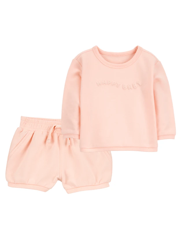 Baby 2-Piece French Terry Pullover & Short Set - Pink