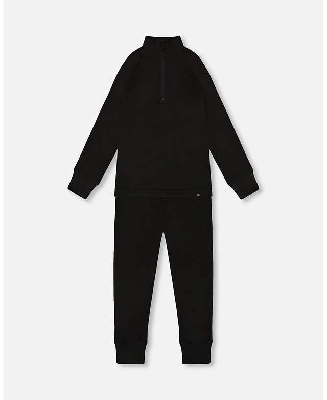 Deux par Kids Unisex Two-Piece Thermal Underwear Set Black