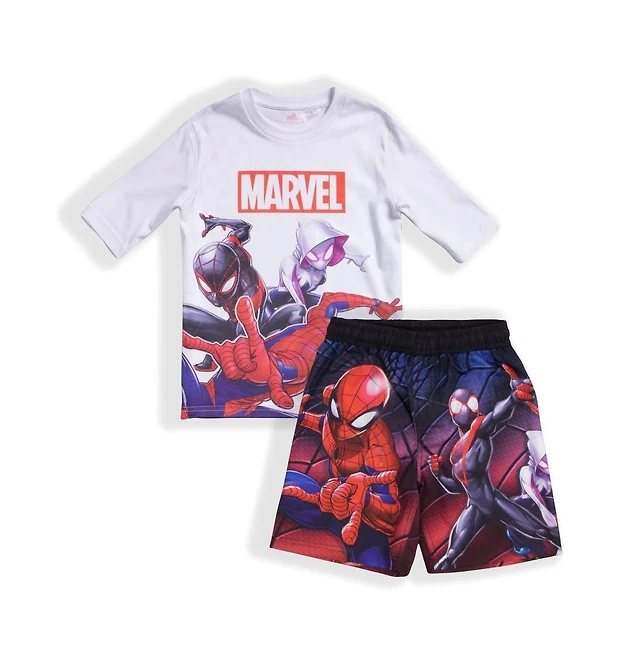 Spider-Man Big Boys Marvel Piece Swim Shirt and Trunks Set