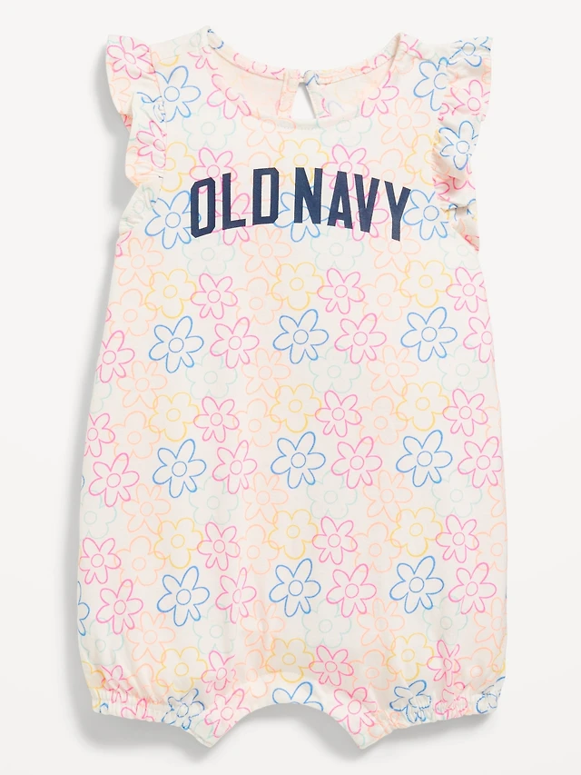 Sleeveless Printed Logo-Graphic One-Piece Romper for Baby
