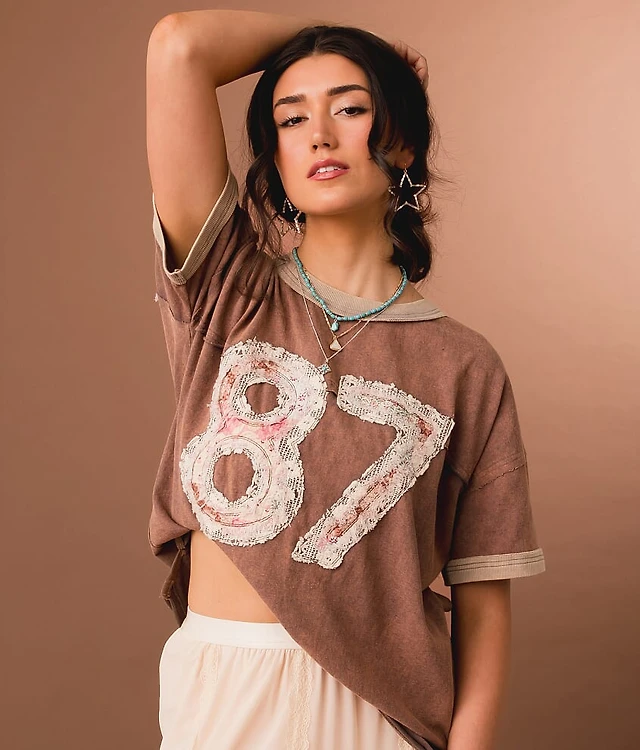La Pop Art Plus American Woman Word V-Neck T-Shirt