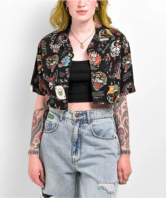 Ninth Hall Faux Rhinestones Black Long Sleeve T-Shirt