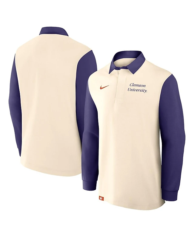 Nike Men's Cream/Purple Lsu Tigers Solid Foundation Striped Performance Polo Shirt