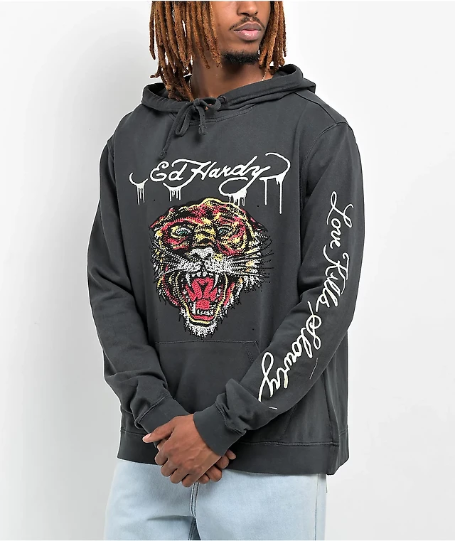 Ed Hardy Rhinestone Tiger Black Hoodie