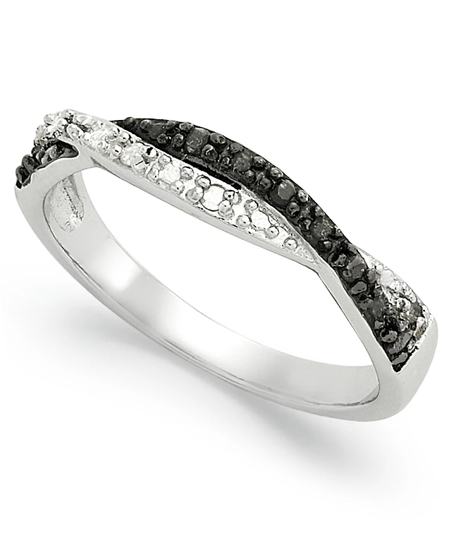 Black and White Diamond Weave Ring Sterling Silver (1/10 ct. t.w.)