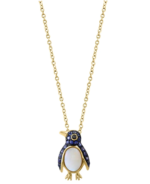 Effy Sapphire (1/3 ct. t.w), Opal (1/2 ct. t.w.) & Black Diamond Accent Penguin 18" Pendant Necklace in 14k Gold