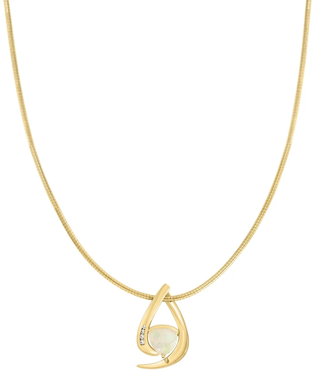 Effy Ethiopian Opal (1-5/8) & Diamond (1/20 ct. t.w.) 18" Pendant Necklace in 14k Gold-Plated Sterling Silver