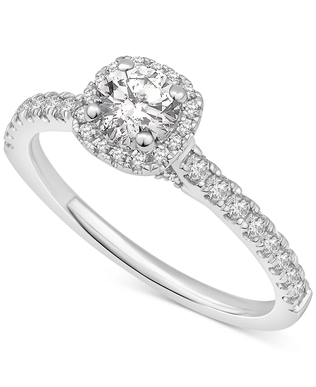 Now + Forever Diamond Halo Engagement Ring 1-3/8 ct tw Round-cut 14K White Gold